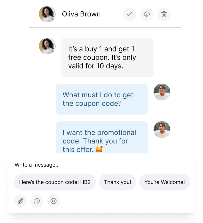 Provide instant customer assistance through an AI agent powered by smart, AI-generated replies — available 24/7 for consistently high satisfaction.